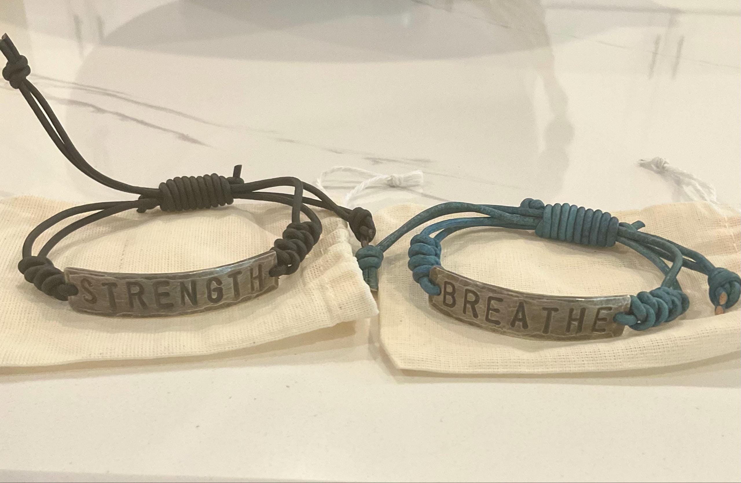 This hand-stamped leather bracelet features the word Strength, a simple yet powerful reminder of resilience, perseverance, and inner resolve. Designed for everyday wear, it’s a grounding piece meant to be worn through both challenges and calm.