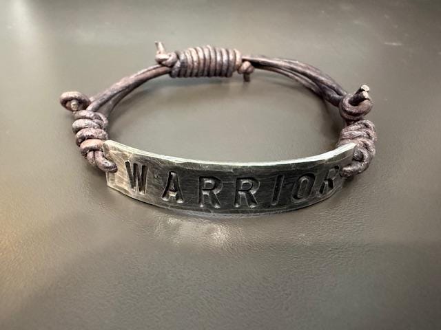 • Hand-stamped fine pewter charm with “WARRIOR”